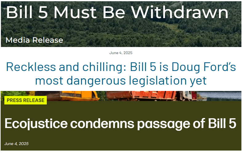 Bill 5: Passed on June 4, 2025, labelled Ford’s “most dangerous legislation yet”.